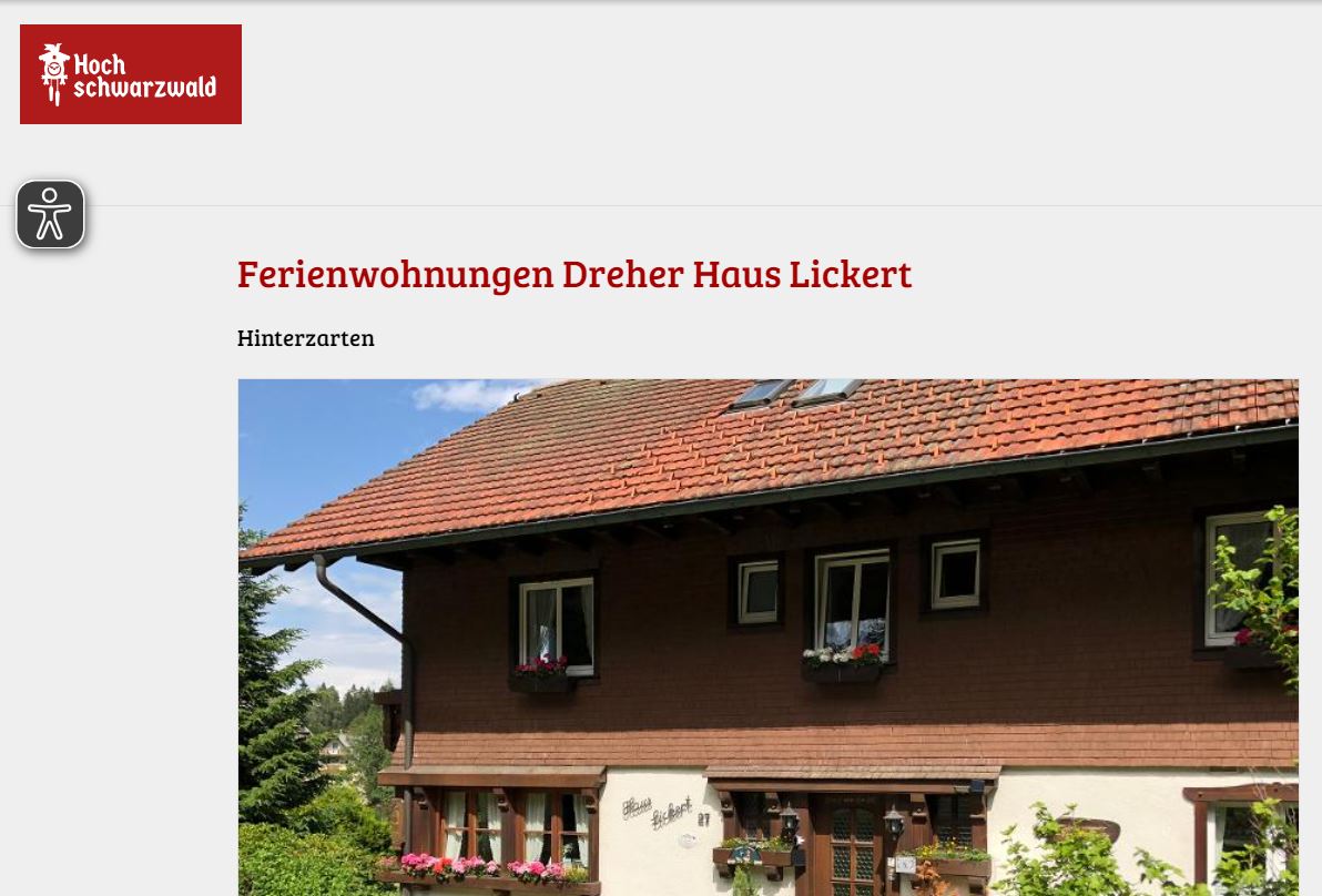 Booking.com Buchungsseite, mehrsprachig Gästehaus Lickert: DE-Deutsche-Sprache: https://www.booking.com/hotel/de/ferienhaus-lickert-ferienwohnung-nord-familie-dreher.de.html US-EN-United-States-English:https://www.booking.com/hotel/de/ferienhaus-lickert-ferienwohnung-nord-familie-dreher.en-gb.html?lang=en-gb&soz=1&lang_changed=1 EN-GB-britisch-English: https://www.booking.com/hotel/de/ferienhaus-lickert-ferienwohnung-nord-familie-dreher.html?lang=en-us&soz=1&lang_changed=1 France-Französische-Sprache: https://www.booking.com/hotel/de/ferienhaus-lickert-ferienwohnung-nord-familie-dreher.fr.html Nederlands-und auf Niederländisch-/-Holländisch: https://www.booking.com/hotel/de/ferienhaus-lickert-ferienwohnung-nord-familie-dreher.nl.html Booking.com vom Ferienhaus Lickert öffnet sich bei Klick auf die jeweiligen Links in einem neuen Fenster, Die Buchung über Booking.com erspart uns Arbeit, und es gibt weniger oder kaum Verzugszeiten zur klassischen Buchungs-dirket-Anfrage. Es ist aber weiter Beides möglich. Information und Buchungsanfragen oder per Telefon: Und Sie können auch über Hochschwarzwald.de*Planen&Buchen*Unterkünfte und dann Ferienhaus Lickert oder Ferienhaus Mühle die Buchungsanfragen stellen oder schicken: Zum Kuckuck hochschwarzwald.de Link Dreher Haus Lickert Zum Kuckuck hocchwarzwald.de Ferienhaus Mühle Die Buchungsanfrage öffnet sich in einem neuen Fenster. Wenn Sie Ihre Buchungsdaten dort eingegeben haben, können Sie abschließend das Fenster wieder schließen, und sind dann wieder auf unserer Hompage des Ferienhauses Mühle und Lickert:
